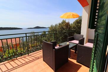 Az Apartman 6 főt tud fogadni. Az ágyak a/az 3 hálószobában vannak, melynek méretei 72m2. A forró nyári estéket a vendégek saját teraszukon élvezhetik. Az apartmanból tengerre néző kilátás nyílik. A közös barbecue-helyet a vendég szabadon használhatja. A szállásegységbe lehetséges háziállatot hozni felár ellenében.