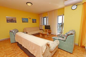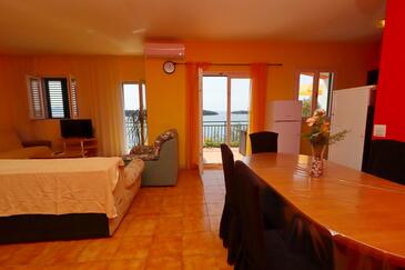 Az Apartman 6 főt tud fogadni. Az ágyak a/az 3 hálószobában vannak, melynek méretei 72m2. A forró nyári estéket a vendégek saját teraszukon élvezhetik. Az apartmanból tengerre néző kilátás nyílik. A közös barbecue-helyet a vendég szabadon használhatja. A szállásegységbe lehetséges háziállatot hozni felár ellenében.