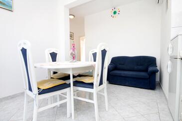 Az Apartman 5 főt tud fogadni. Az ágyak a/az 2 hálószobában, és a étkezőban/ben vannak, melynek méretei 37m2. A forró nyári estéket a vendégek saját teraszukon élvezhetik. Az apartmanból tengerre néző kilátás nyílik. A közös barbecue-helyet a vendég szabadon használhatja. A szállásegységbe lehetséges háziállatot hozni felár ellenében.