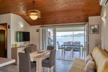 Az Apartman 6 főt tud fogadni. Az ágyak a/az 3 hálószobában vannak, melynek méretei 80m2. A forró nyári estéket a vendégek saját teraszukon élvezhetik. Az apartmanból tengerre néző kilátás nyílik. A közös barbecue-helyet a vendég szabadon használhatja.
