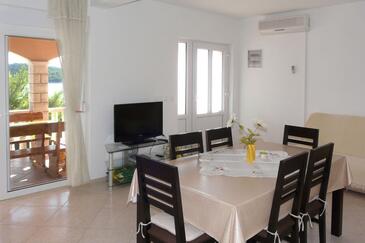 Az Apartman 5 főt tud fogadni. Az ágyak a/az 2 hálószobában, és a nappaliban/ben vannak, melynek méretei 55m2. A forró nyári estéket a vendégek saját teraszukon élvezhetik. Az apartmanból tengerre néző kilátás nyílik. A közös barbecue-helyet a vendég szabadon használhatja. A szállásegységbe lehetséges háziállatot hozni felár ellenében.