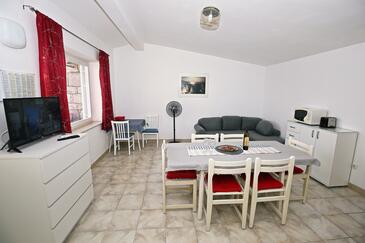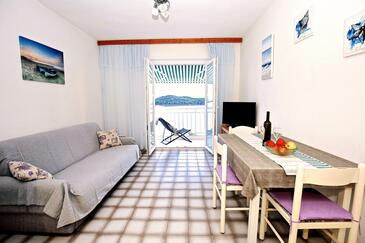 Az Apartman 3 főt tud fogadni. Az ágyak a/az 1 hálószobában, és a étkezőban/ben vannak, melynek méretei 28m2. A forró nyári estéket a vendégek saját balkonukon élvezhetik. Az apartmanból tengerre néző kilátás nyílik. A közös barbecue-helyet a vendég szabadon használhatja. A szállásegységbe lehetséges háziállatot hozni felár ellenében. A lefoglalt szállásegység vendégeinek az érkezés napján a helyszínen letétet kell fizetniük (az összeg a honlapon fel van tüntetve).