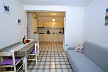 Az Apartman 3 főt tud fogadni. Az ágyak a/az 1 hálószobában, és a étkezőban/ben vannak, melynek méretei 28m2. A forró nyári estéket a vendégek saját balkonukon élvezhetik. Az apartmanból tengerre néző kilátás nyílik. A közös barbecue-helyet a vendég szabadon használhatja. A szállásegységbe lehetséges háziállatot hozni felár ellenében. A lefoglalt szállásegység vendégeinek az érkezés napján a helyszínen letétet kell fizetniük (az összeg a honlapon fel van tüntetve).