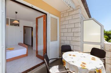 Az Apartman 5 főt tud fogadni. Az ágyak a/az 2 hálószobában vannak, melynek méretei 50m2. A forró nyári estéket a vendégek saját teraszukon élvezhetik. Az apartmanból tengerre néző kilátás nyílik. A közös barbecue-helyet a vendég szabadon használhatja. A szállásegységbe lehetséges háziállatot hozni felár ellenében.