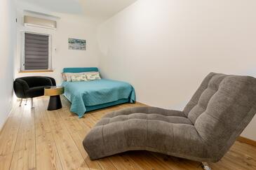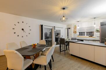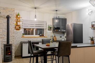 Az Ház 10 főt tud fogadni. Az ágyak a/az 4 hálószobában, és a nappaliban/ben vannak, melynek méretei 140m2. A forró nyári estéket a vendégek saját teraszukon élvezhetik. A házból tengerre néző kilátás nyílik. A teljes élvezet és kikapcsolódás érdekében van saját barbecue hely is, csakis e szálláshely vendégei számára.