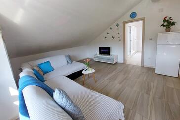Az Apartman 6 főt tud fogadni. Az ágyak a/az 2 hálószobában, és a nappaliban/ben vannak, melynek méretei 74m2. A forró nyári estéket a vendégek saját teraszukon élvezhetik. Az apartmanból tengerre néző kilátás nyílik. A teljes élvezet és kikapcsolódás érdekében van saját barbecue hely is, csakis e szálláshely vendégei számára.