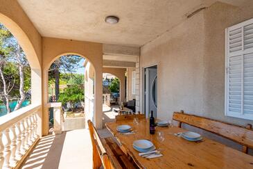 Az Apartman 4 főt tud fogadni. Az ágyak a/az 2 hálószobában vannak, melynek méretei 50m2. A forró nyári estéket a vendégek saját teraszukon élvezhetik. Az apartmanból tengerre néző kilátás nyílik. A teljes élvezet és kikapcsolódás érdekében van saját barbecue hely is, csakis e szálláshely vendégei számára. A szállásegységbe lehetséges háziállatot hozni, ennek költségét a foglalási díj tartalmazza. A szállásegység egyes helyiségei elkülönülnek a szállásegység többi részétől.
