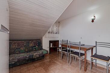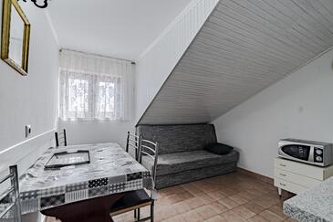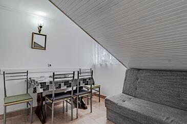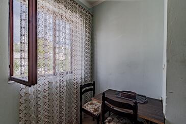 Az Apartman 5 főt tud fogadni. Az ágyak a/az 2 hálószobában, és a étkezőban/ben vannak, melynek méretei 44m2. Az apartmanból tengerre néző kilátás nyílik. A közös barbecue-helyet a vendég szabadon használhatja. A vendégek itt tartózkodásuk ideje alatt használhatják a közös medencét. A lefoglalt szállásegység közös teraszt használ..