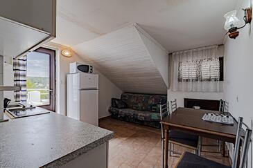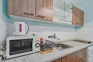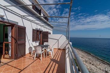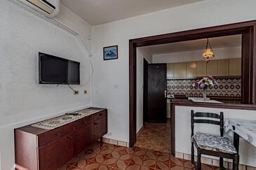 Az Apartman 5 főt tud fogadni. Az ágyak a/az 2 hálószobában, és a étkezőban/ben vannak, melynek méretei 44m2. Az apartmanból tengerre néző kilátás nyílik. A közös barbecue-helyet a vendég szabadon használhatja. A vendégek itt tartózkodásuk ideje alatt használhatják a közös medencét. A lefoglalt szállásegység közös teraszt használ..