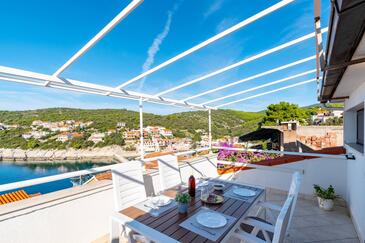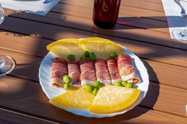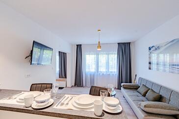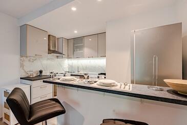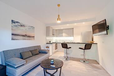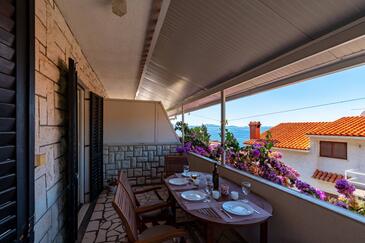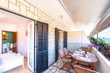 Az Apartman 4 főt tud fogadni. Az ágyak a/az 2 hálószobában vannak, melynek méretei 46m2. A forró nyári estéket a vendégek saját teraszukon élvezhetik. Az apartmanból tengerre néző kilátás nyílik. A közös barbecue-helyet a vendég szabadon használhatja.