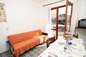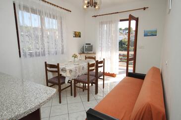 Az Apartman 5 főt tud fogadni. Az ágyak a/az 2 hálószobában, és a étkezőban/ben vannak, melynek méretei 51m2. A forró nyári estéket a vendégek saját teraszukon élvezhetik. Az apartmanból tengerre néző kilátás nyílik. A közös barbecue-helyet a vendég szabadon használhatja. A szállásegységbe lehetséges háziállatot hozni felár ellenében.