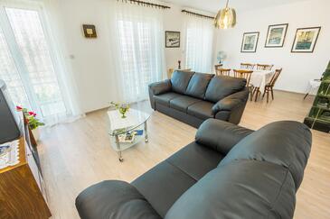 Az Apartman 4 főt tud fogadni. Az ágyak a/az 2 hálószobában vannak, melynek méretei 73m2. A forró nyári estéket a vendégek saját balkonukon élvezhetik. Az apartmanból tengerre néző kilátás nyílik. A közös barbecue-helyet a vendég szabadon használhatja.
