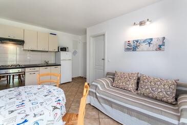 Az Apartman 4 főt tud fogadni. Az ágyak a/az 2 hálószobában vannak, melynek méretei 36m2. A forró nyári estéket a vendégek saját teraszukon élvezhetik. A közös barbecue-helyet a vendég szabadon használhatja. A lefoglalt szállásegység teraszán áthaladnak más vendégek, vagy a tulajdonosok.