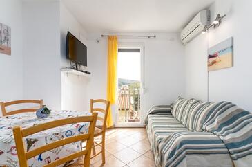 Az Apartman 4 főt tud fogadni. Az ágyak a/az 2 hálószobában vannak, melynek méretei 36m2. A forró nyári estéket a vendégek saját teraszukon élvezhetik. A közös barbecue-helyet a vendég szabadon használhatja. A lefoglalt szállásegység teraszán áthaladnak más vendégek, vagy a tulajdonosok.