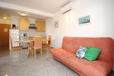 Az Apartman 4 főt tud fogadni. Az ágyak a/az 2 hálószobában vannak, melynek méretei 46m2. A forró nyári estéket a vendégek saját balkonukon élvezhetik. Az apartmanból tengerre néző kilátás nyílik. A szállásegységbe lehetséges háziállatot hozni felár ellenében.