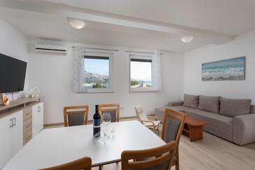Az Apartman 5 főt tud fogadni. Az ágyak a/az 2 hálószobában, és a nappaliban/ben vannak, melynek méretei 60m2. A forró nyári estéket a vendégek saját teraszukon élvezhetik. A közös barbecue-helyet a vendég szabadon használhatja.