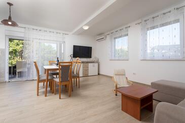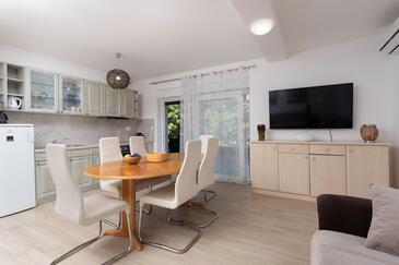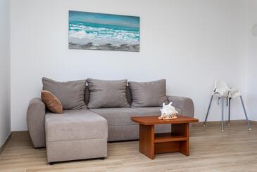 Az Apartman 5 főt tud fogadni. Az ágyak a/az 2 hálószobában, és a nappaliban/ben vannak, melynek méretei 60m2. A forró nyári estéket a vendégek saját teraszukon élvezhetik. A közös barbecue-helyet a vendég szabadon használhatja.