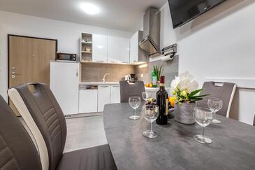 Az Apartman 5 főt tud fogadni. Az ágyak a/az 2 hálószobában, és a nappaliban/ben vannak, melynek méretei 52m2. A forró nyári estéket a vendégek saját balkonukon élvezhetik. Az apartmanból tengerre néző kilátás nyílik.