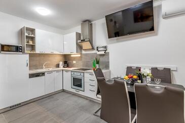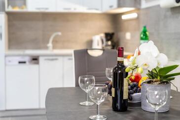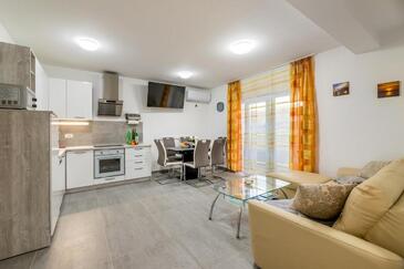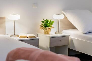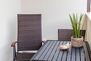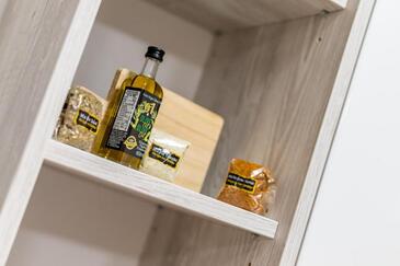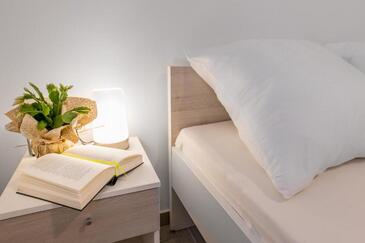 Az Apartman 5 főt tud fogadni. Az ágyak a/az 2 hálószobában, és a nappaliban/ben vannak, melynek méretei 52m2. A forró nyári estéket a vendégek saját balkonukon élvezhetik. Az apartmanból tengerre néző kilátás nyílik.