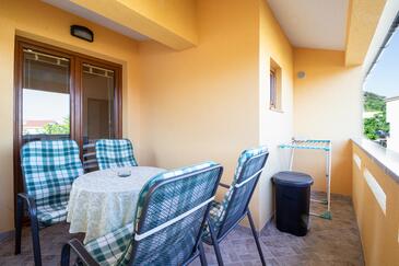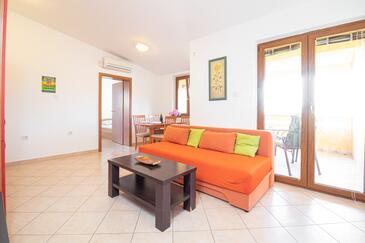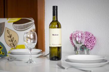 Az Apartman 4 főt tud fogadni. Az ágyak a/az 1 hálószobában, és a nappaliban/ben vannak, melynek méretei 30m2. A forró nyári estéket a vendégek saját balkonukon élvezhetik. Az apartmanból tengerre néző kilátás nyílik. A közös barbecue-helyet a vendég szabadon használhatja.