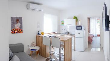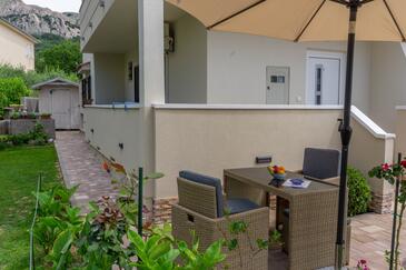 Az Apartman 2 főt tud fogadni. Az ágyak a/az 1 hálószobában vannak, melynek méretei 28m2. A forró nyári estéket a vendégek saját teraszukon élvezhetik. A közös barbecue-helyet a vendég szabadon használhatja. A lefoglalt szállásegység vendégeinek az érkezés napján a helyszínen letétet kell fizetniük (az összeg a honlapon fel van tüntetve).