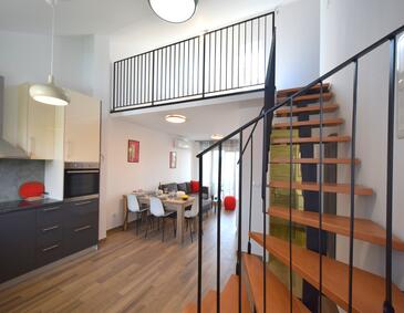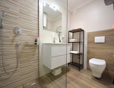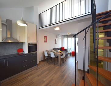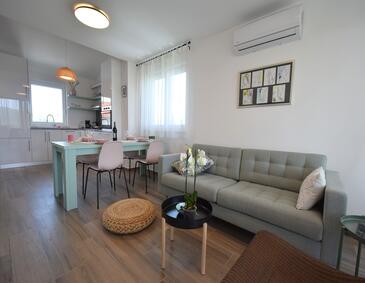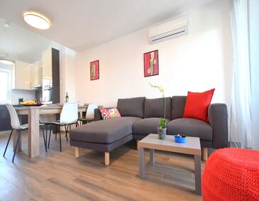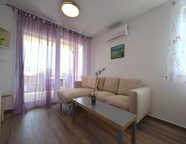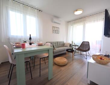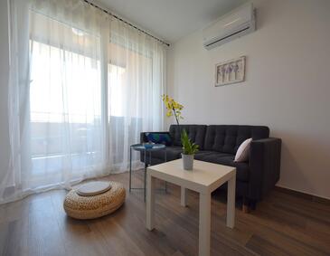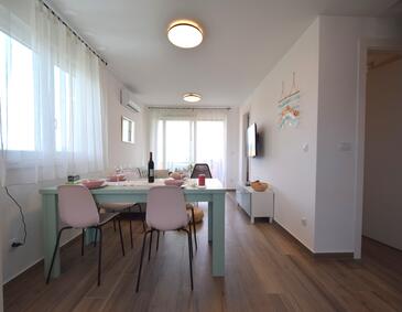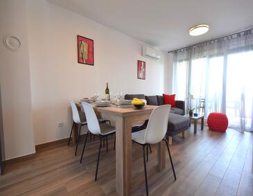 Az Apartman 4 főt tud fogadni. Az ágyak a/az 2 hálószobában vannak, melynek méretei 55m2. A forró nyári estéket a vendégek saját teraszukon élvezhetik. Az apartmanból tengerre néző kilátás nyílik. A közös barbecue-helyet a vendég szabadon használhatja.