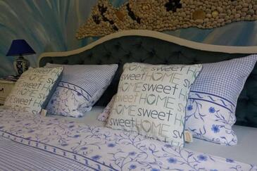 Az Apartman 6 főt tud fogadni. Az ágyak a/az 2 hálószobában vannak, melynek méretei 80m2. A forró nyári estéket a vendégek saját teraszukon élvezhetik. A közös barbecue-helyet a vendég szabadon használhatja. A szállásegységbe lehetséges háziállatot hozni felár ellenében.