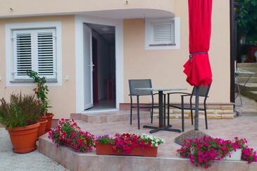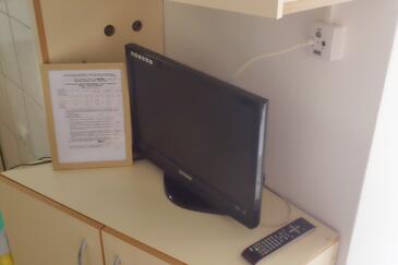 Az Apartman 4 főt tud fogadni. Az ágyak a/az 1 hálószobában, és a nappaliban/ben vannak, melynek méretei 24m2. A forró nyári estéket a vendégek saját teraszukon élvezhetik. Az apartmanból tengerre néző kilátás nyílik. A közös barbecue-helyet a vendég szabadon használhatja. A szállásegységbe lehetséges háziállatot hozni felár ellenében.