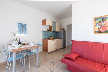 Az Apartman 4 főt tud fogadni. Az ágyak a/az 2 hálószobában vannak, melynek méretei 55m2. A forró nyári estéket a vendégek saját balkonukon élvezhetik. Az apartmanból tengerre néző kilátás nyílik. A szállásegységbe lehetséges háziállatot hozni felár ellenében.