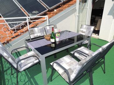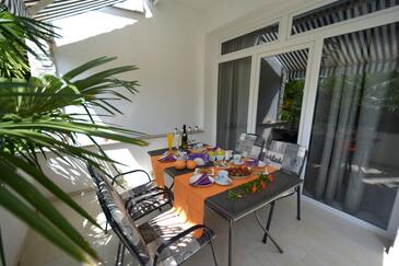 Az Apartman 2 főt tud fogadni. Az ágyak a/az 1 hálószobában vannak, melynek méretei 29m2. A forró nyári estéket a vendégek saját teraszukon élvezhetik. Az apartmanból tengerre néző kilátás nyílik. A közös barbecue-helyet a vendég szabadon használhatja. A vendégek itt tartózkodásuk ideje alatt használhatják a közös medencét. A szállásegységbe lehetséges háziállatot hozni felár ellenében.