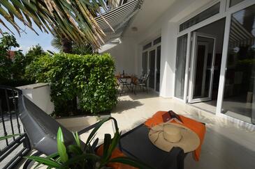 Az Apartman 2 főt tud fogadni. Az ágyak a/az 1 hálószobában vannak, melynek méretei 29m2. A forró nyári estéket a vendégek saját teraszukon élvezhetik. Az apartmanból tengerre néző kilátás nyílik. A közös barbecue-helyet a vendég szabadon használhatja. A vendégek itt tartózkodásuk ideje alatt használhatják a közös medencét. A szállásegységbe lehetséges háziállatot hozni felár ellenében.