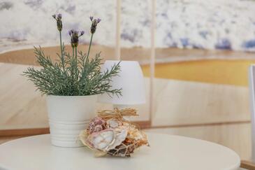 Az Apartman 4 főt tud fogadni. Az ágyak a/az 2 hálószobában vannak, melynek méretei 66m2. A forró nyári estéket a vendégek saját teraszukon élvezhetik. A szállásegységbe lehetséges háziállatot hozni, ennek költségét a foglalási díj tartalmazza.