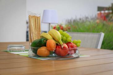 Az Apartman 4 főt tud fogadni. Az ágyak a/az 2 hálószobában vannak, melynek méretei 66m2. A forró nyári estéket a vendégek saját teraszukon élvezhetik. A szállásegységbe lehetséges háziállatot hozni, ennek költségét a foglalási díj tartalmazza.