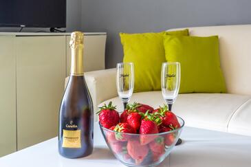 Az Apartman 6 főt tud fogadni. Az ágyak a/az 1 hálószobában, és a nappaliban/ben vannak, melynek méretei 45m2. A forró nyári estéket a vendégek saját balkonukon élvezhetik. Az apartmanból tengerre néző kilátás nyílik. A teljes élvezet és kikapcsolódás érdekében van saját barbecue hely is, csakis e szálláshely vendégei számára. A vendégek itt tartózkodásuk ideje alatt használhatják a közös medencét.