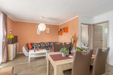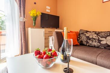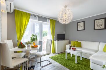 Az Apartman 6 főt tud fogadni. Az ágyak a/az 1 hálószobában, és a nappaliban/ben vannak, melynek méretei 45m2. A forró nyári estéket a vendégek saját balkonukon élvezhetik. Az apartmanból tengerre néző kilátás nyílik. A teljes élvezet és kikapcsolódás érdekében van saját barbecue hely is, csakis e szálláshely vendégei számára. A vendégek itt tartózkodásuk ideje alatt használhatják a közös medencét.