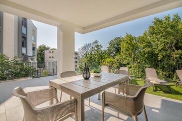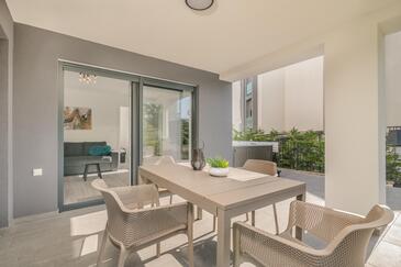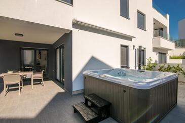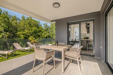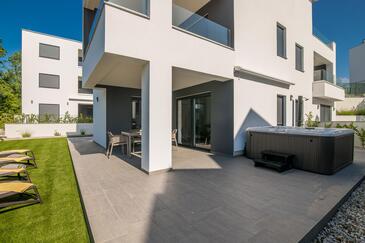 Az Apartman 4 főt tud fogadni. Az ágyak a/az 2 hálószobában vannak, melynek méretei 46m2. A forró nyári estéket a vendégek saját teraszukon élvezhetik. A közös barbecue-helyet a vendég szabadon használhatja.