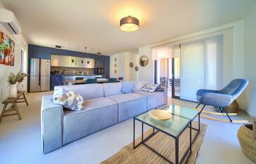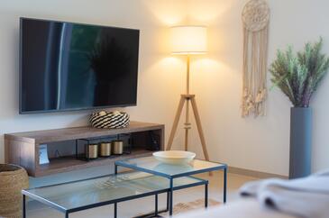 Az Apartman 4 főt tud fogadni. Az ágyak a/az 2 hálószobában vannak, melynek méretei 80m2. A forró nyári estéket a vendégek saját teraszukon élvezhetik. A közös barbecue-helyet a vendég szabadon használhatja. A szállásegységbe lehetséges háziállatot hozni felár ellenében.
