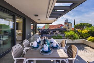 Az Apartman 8 főt tud fogadni. Az ágyak a/az 3 hálószobában, és a nappaliban/ben vannak, melynek méretei 83m2. A forró nyári estéket a vendégek saját teraszukon élvezhetik. Az apartmanból tengerre néző kilátás nyílik. A szállásegységbe lehetséges háziállatot hozni felár ellenében.