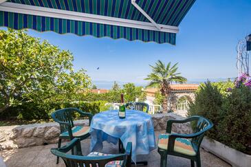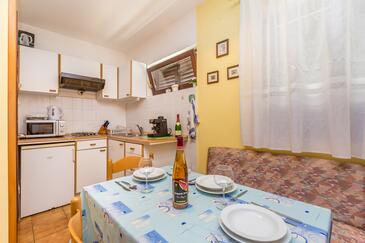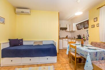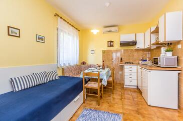 Az Stúdió 4 főt tud fogadni. Az ágyak a/az 1 hálószobában, és a nappaliban/ben vannak, melynek méretei 28m2. A forró nyári estéket a vendégek saját teraszukon élvezhetik. A stúdióból tengerre néző kilátás nyílik. A közös barbecue-helyet a vendég szabadon használhatja. A szállásegységbe lehetséges háziállatot hozni felár ellenében.