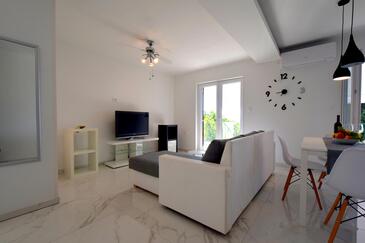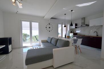Az Apartman 4 főt tud fogadni. Az ágyak a/az 2 hálószobában vannak, melynek méretei 50m2. A forró nyári estéket a vendégek saját teraszukon élvezhetik. Az apartmanból tengerre néző kilátás nyílik. A szállásegységbe lehetséges háziállatot hozni felár ellenében.