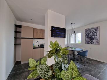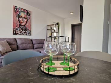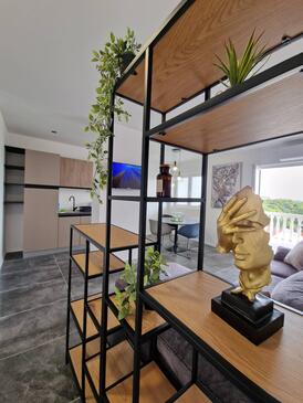 Az Apartman 5 főt tud fogadni. Az ágyak a/az 1 hálószobában, és a nappaliban/ben vannak, melynek méretei 45m2. A forró nyári estéket a vendégek saját teraszukon élvezhetik. Az apartmanból tengerre néző kilátás nyílik. A közös barbecue-helyet a vendég szabadon használhatja.