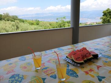 Az Apartman 6 főt tud fogadni. Az ágyak a/az 3 hálószobában vannak, melynek méretei 88m2. A forró nyári estéket a vendégek saját teraszukon élvezhetik. Az apartmanból tengerre néző kilátás nyílik. A közös barbecue-helyet a vendég szabadon használhatja. A szállásegységbe lehetséges háziállatot hozni felár ellenében.