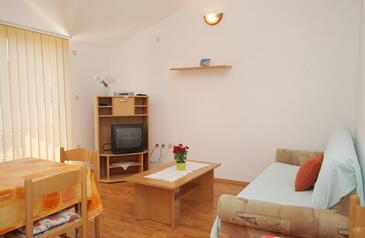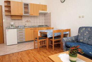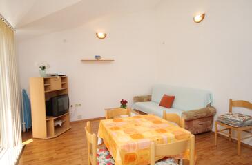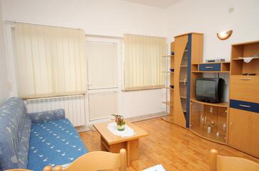 Az Apartman 6 főt tud fogadni. Az ágyak a/az 2 hálószobában, és a nappaliban/ben vannak, melynek méretei 57m2. A forró nyári estéket a vendégek saját teraszukon élvezhetik. Az apartmanból tengerre néző kilátás nyílik. A közös barbecue-helyet a vendég szabadon használhatja. A szállásegységbe lehetséges háziállatot hozni felár ellenében.