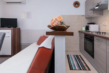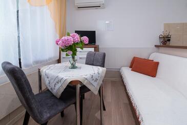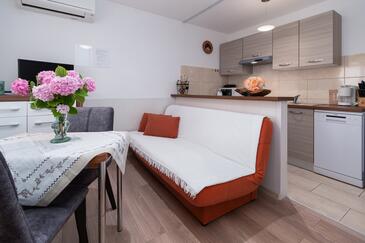 Az Apartman 5 főt tud fogadni. Az ágyak a/az 2 hálószobában, és a nappaliban/ben vannak, melynek méretei 51m2. A forró nyári estéket a vendégek saját teraszukon élvezhetik. Az apartmanból tengerre néző kilátás nyílik. A közös barbecue-helyet a vendég szabadon használhatja. A szállásegységbe lehetséges háziállatot hozni felár ellenében.