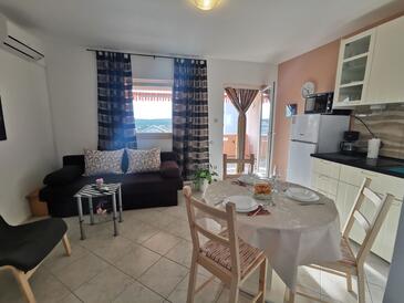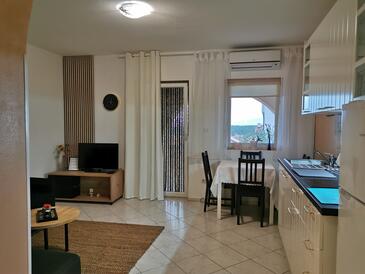 Az Apartman 3 főt tud fogadni. Az ágyak a/az 1 hálószobában, és a nappaliban/ben vannak, melynek méretei 35m2. A forró nyári estéket a vendégek saját teraszukon élvezhetik. Az apartmanból tengerre néző kilátás nyílik. A közös barbecue-helyet a vendég szabadon használhatja. A vendégek itt tartózkodásuk ideje alatt használhatják a közös medencét.