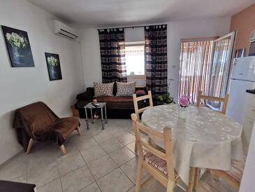 Az Apartman 3 főt tud fogadni. Az ágyak a/az 1 hálószobában, és a nappaliban/ben vannak, melynek méretei 35m2. A forró nyári estéket a vendégek saját teraszukon élvezhetik. Az apartmanból tengerre néző kilátás nyílik. A közös barbecue-helyet a vendég szabadon használhatja. A vendégek itt tartózkodásuk ideje alatt használhatják a közös medencét.