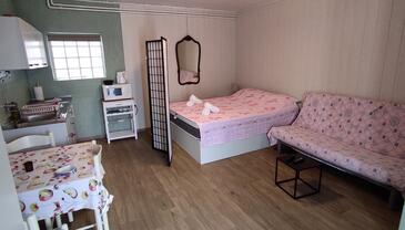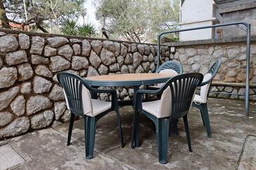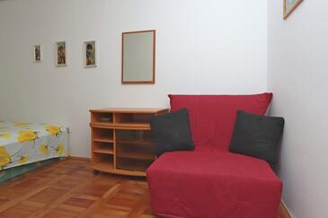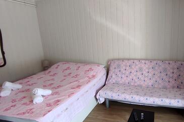 Az Apartman 5 főt tud fogadni. Az ágyak a/az 2 hálószobában vannak, melynek méretei 50m2. A forró nyári estéket a vendégek saját balkonukon élvezhetik. Az apartmanból tengerre néző kilátás nyílik. A közös barbecue-helyet a vendég szabadon használhatja. A szállásegységbe lehetséges háziállatot hozni felár ellenében.