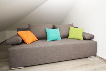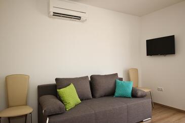 Az Apartman 4 főt tud fogadni. Az ágyak a/az 1 hálószobában, és a nappaliban/ben vannak, melynek méretei 28m2. A forró nyári estéket a vendégek saját balkonukon élvezhetik. Az apartmanból tengerre néző kilátás nyílik. A közös barbecue-helyet a vendég szabadon használhatja.