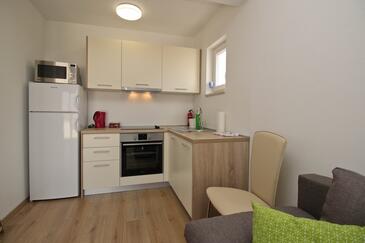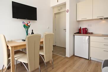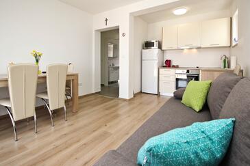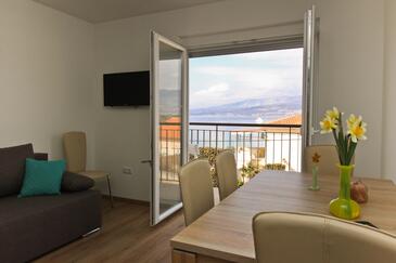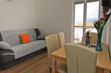 Az Apartman 4 főt tud fogadni. Az ágyak a/az 1 hálószobában, és a nappaliban/ben vannak, melynek méretei 28m2. A forró nyári estéket a vendégek saját balkonukon élvezhetik. Az apartmanból tengerre néző kilátás nyílik. A közös barbecue-helyet a vendég szabadon használhatja.