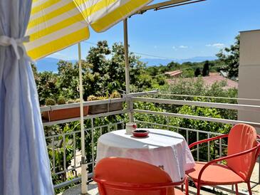 Az Apartman 4 főt tud fogadni. Az ágyak a/az 2 hálószobában vannak, melynek méretei 48m2. A forró nyári estéket a vendégek saját teraszukon élvezhetik. Az apartmanból tengerre néző kilátás nyílik. A közös barbecue-helyet a vendég szabadon használhatja. A szállásegységbe lehetséges háziállatot hozni felár ellenében.